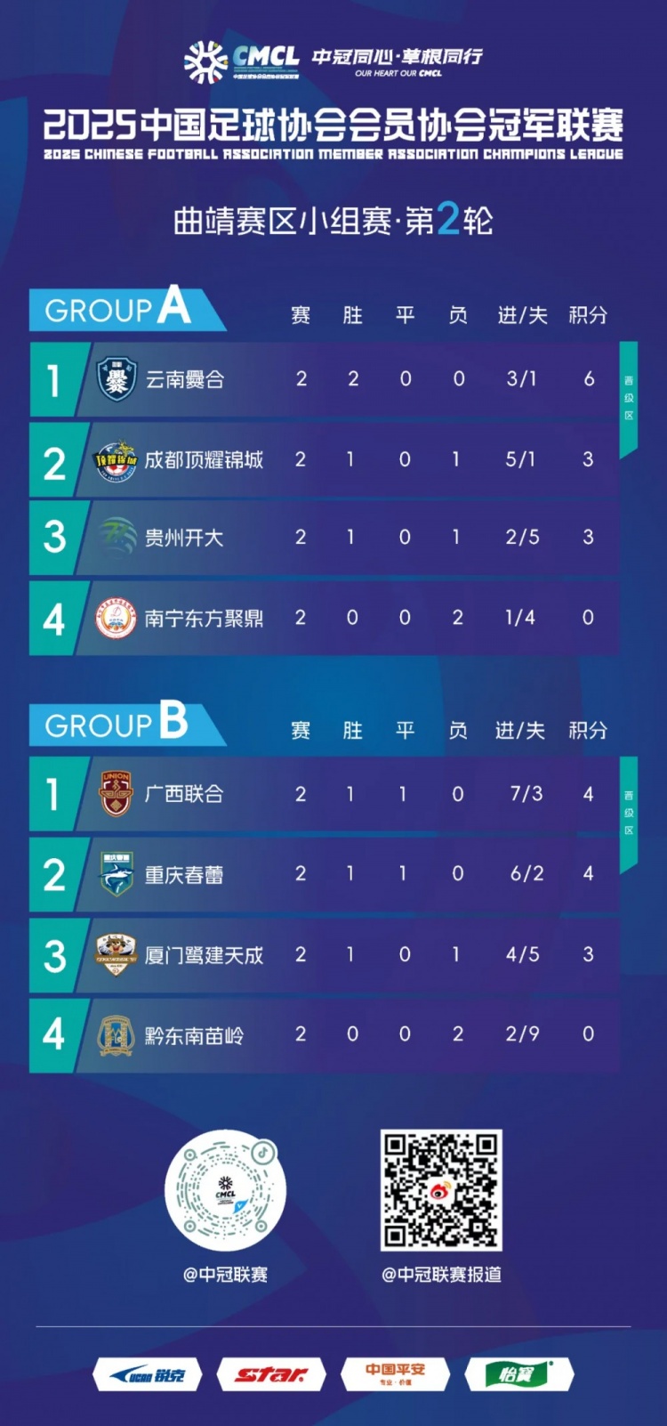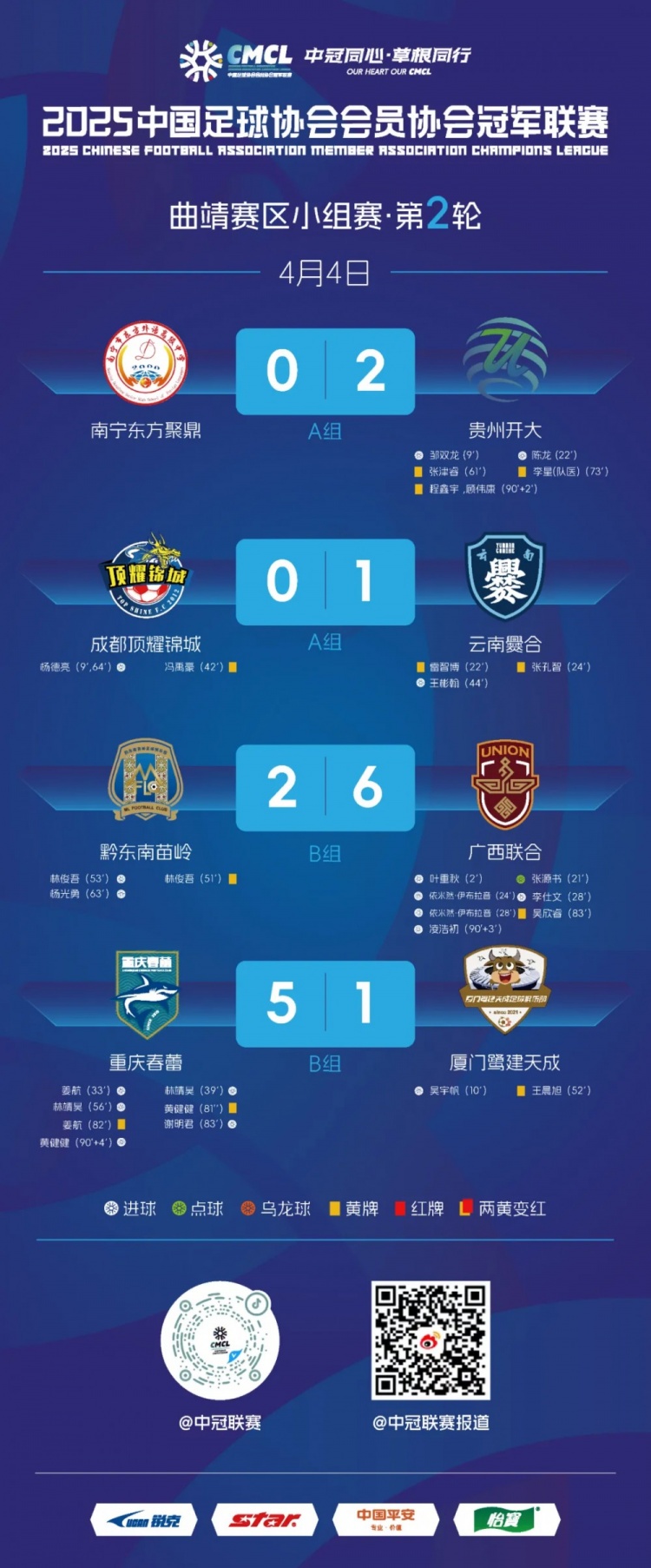 4月5日讯 据中冠联赛官方报道,昨天进行了曲靖赛区小组赛第二轮比赛,具体各场如下: