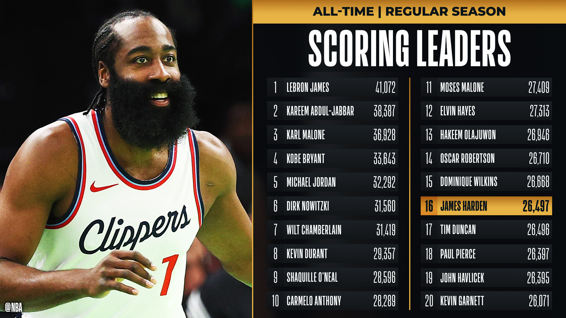 传奇仍在路上!哈登生涯总得分超越邓肯 升至NBA历史第16位!