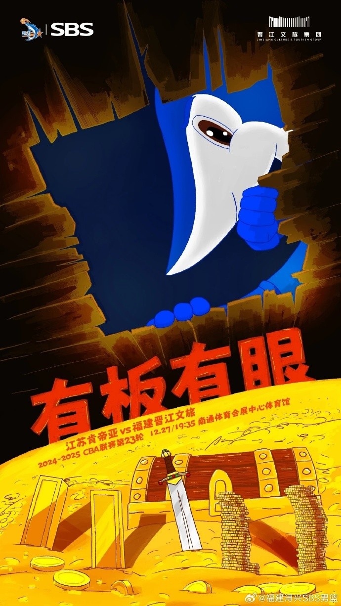 2024-2025赛季CBA常规赛第二十三轮明晚继续开战,福建晋江文旅男篮明晚(12月27日)19:35客场对阵江苏肯帝亚男篮。
