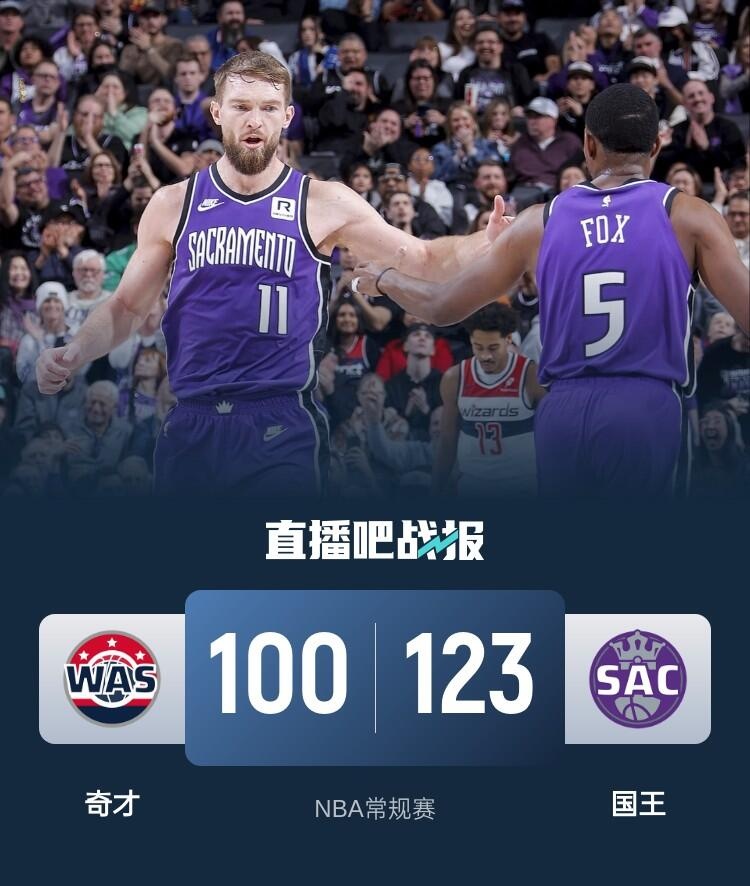 小萨29+18 德罗赞24+6 瓦兰23+12 国王送奇才10连败