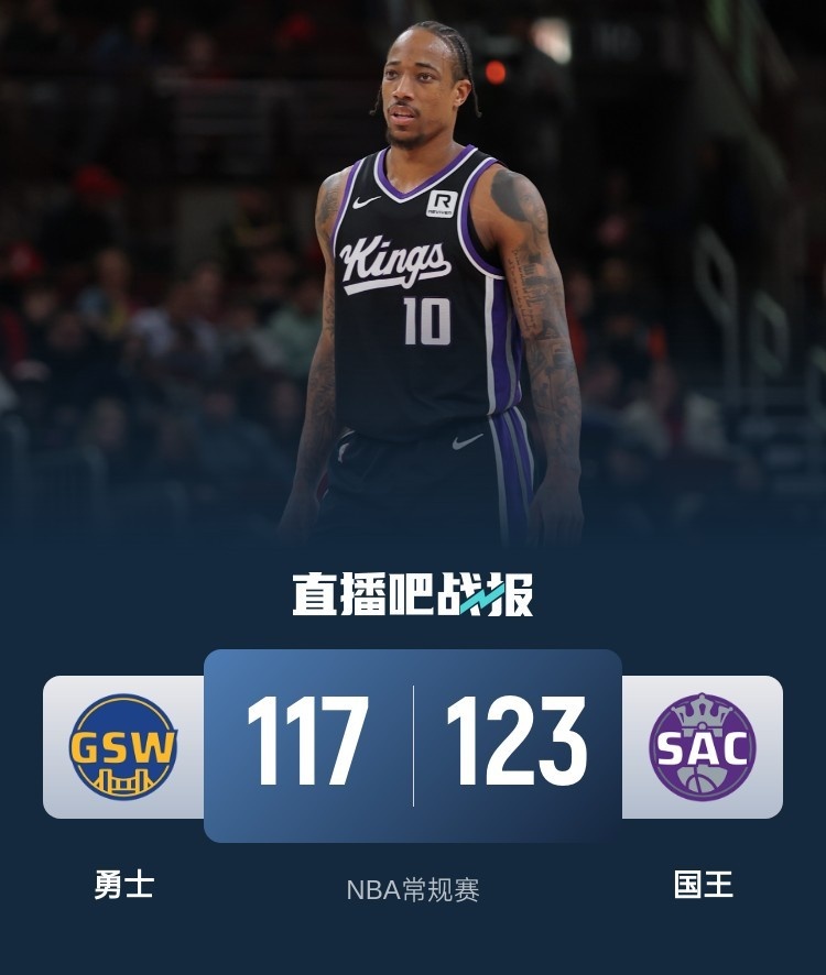 国王18分逆转勇士 德罗赞32+5 库里14+12&下半场2分3失误