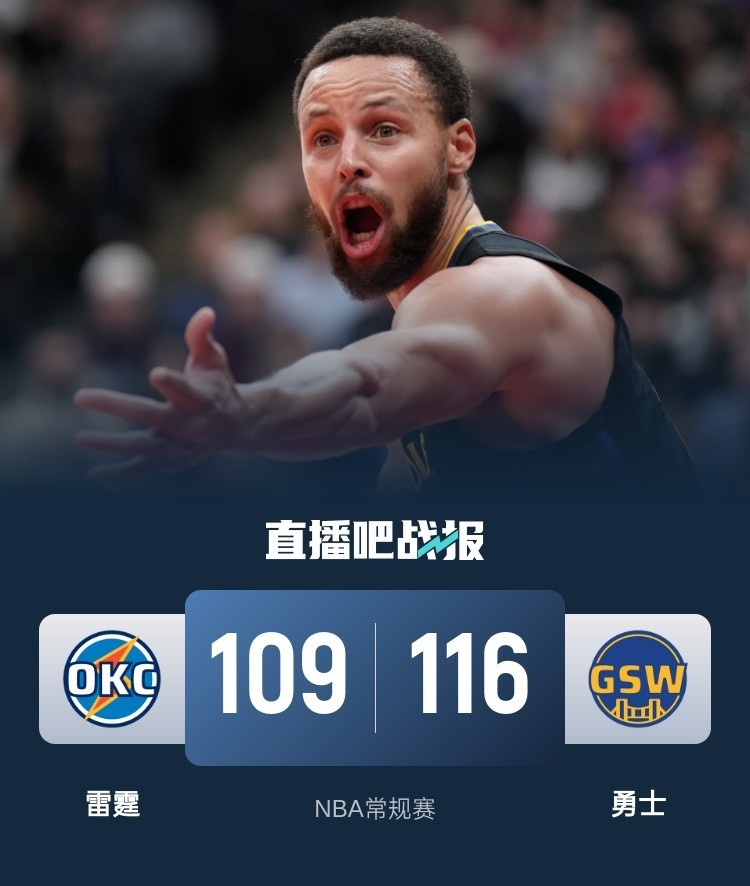 伤愈复出的库里和希尔德两人首节完全找不到手感合计9投0中,这也间接导致球队外线三分12投1中打得非常被动;反观亚历山大手感热得发烫首节8投7中砍下21分,单节得分比勇士整节都多并带队第一节就取得14分领先;次节归来库里虽然打破运动战得分荒但状态依旧不佳,雷霆这边亚历山大延续出色进攻;但勇士能够限制雷霆其余球员的发挥成为这一节占优的关键并追至10分进入下半场。休息归来库里和希尔德外线相继破荒,勇士也送上21-6的攻势一举反超比分。这之后双方开启拉锯交替拿分,勇士僵持战中凭借一波14-5的攻势拉开8分优势,雷霆这边只能依靠着亚历山大和杰伦威拿分,库里和维金斯最后两记致命三分成为胜负关键。最终,勇士力克雷霆拿下比赛。