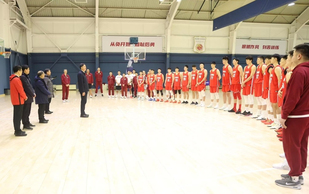 篮球馆中,国家男子篮球队正在积极备战亚洲杯预选赛第三窗口的比赛。高志丹说,男篮是中国体育的旗帜标兵,新一代男篮要牢记为国争光的使命责任,加强队伍的思想作风建设,科学训练,发挥榜样的力量,希望大家团结一心,共同努力奋斗。“争取在奥运会的开闭幕式上再次看到男篮队员成为中国体育代表团的旗手。”高志丹鼓励大家。