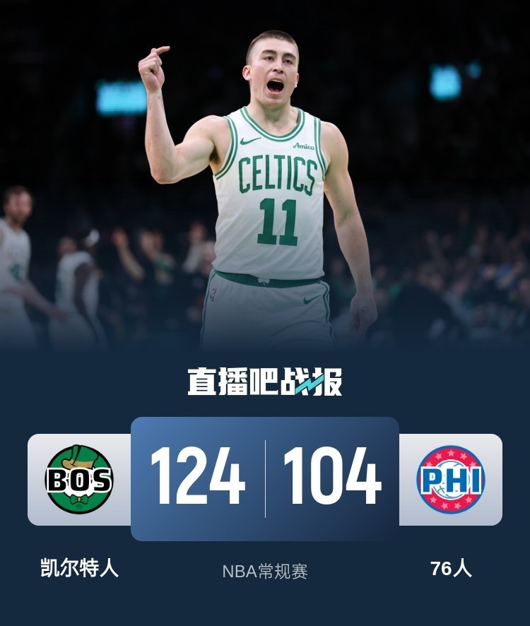 普理查德8记三分 塔图姆三双 乔治17分 凯尔特人送76人6连败