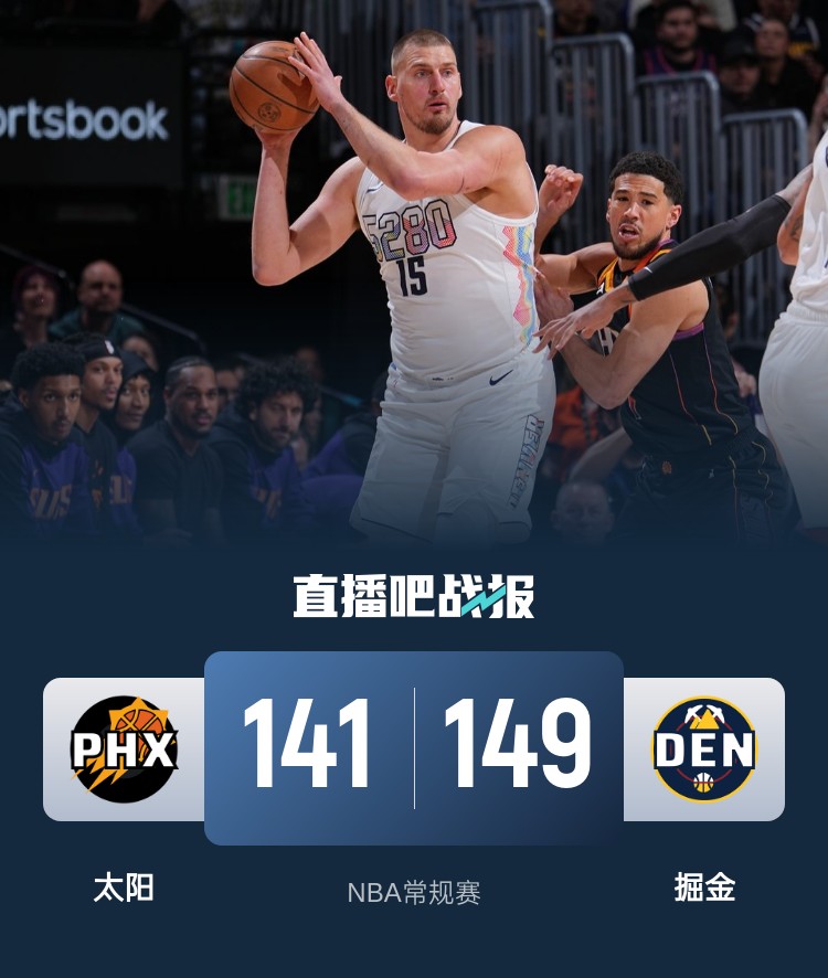 约基奇31+21+22天神下凡 掘金拒绝21分大逆转加时击败太阳