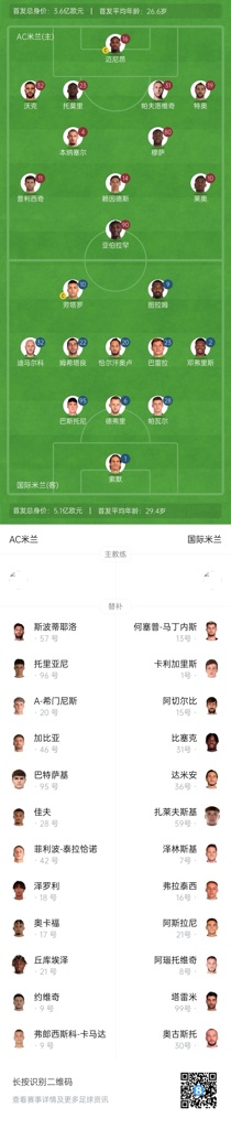 目前21轮比赛过后,AC米兰9胜7平5负积34分位列第八;国际米兰15胜5平1负积50分位列第二,蓝黑军团近期联赛2连胜。