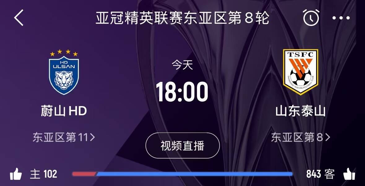 按照原定计划,山东泰山将于今日18点在客场对阵蔚山HD。