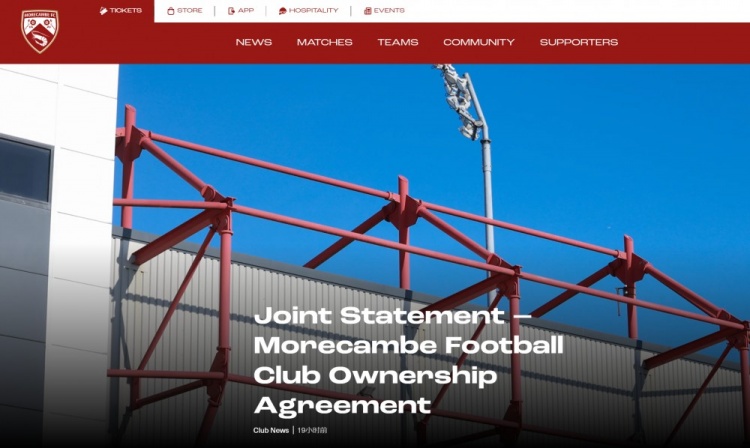 官方:莫克姆俱乐部的多数股权转让已经达成协议